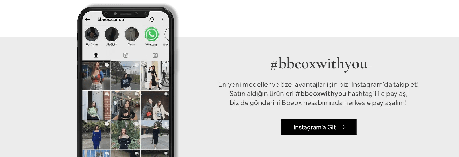 Özgür bir stile hayat veren crop top bluzların başrolü üstlendiği Bbeox üst giyim kategorisi konfordan ödün vermeden şık olmanın sırrını veriyor. Kategoride son günlerin yükselen yıldızı Bralet Modelleri ile kazak, triko, gömlek, tshirt, elbise, tulum ve Kadın Sweatshirt Modellerini inceleyebilirsiniz.